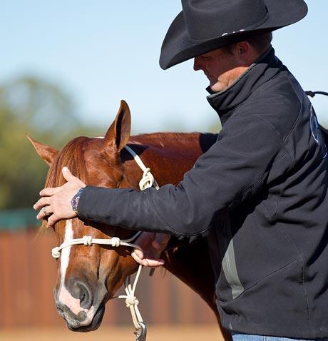 Step 4: When the colt relaxes, retreat (take the bit away) and rub his face with your hand.