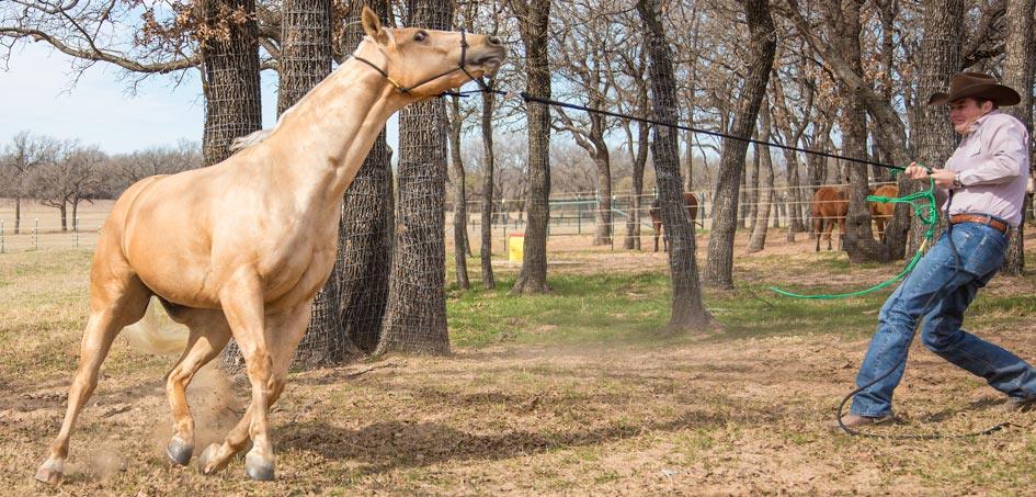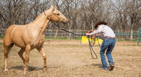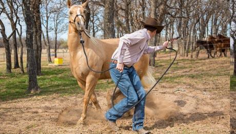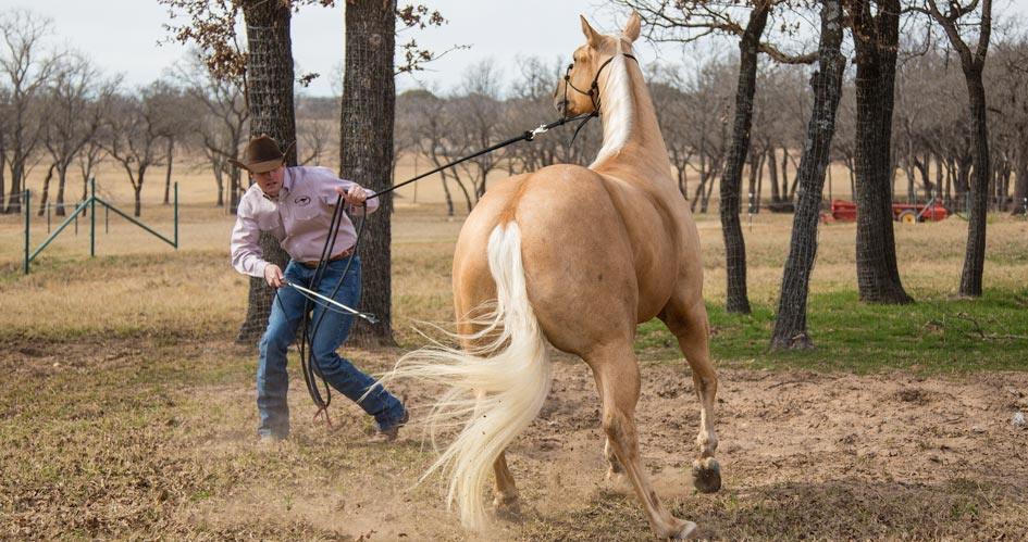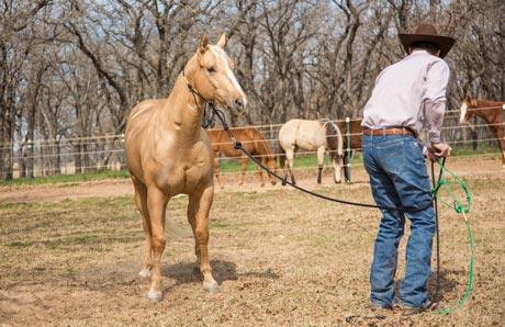 My first suggestion to people with this problem is to start the Method from the beginning and work your way through the Fundamentals Series—not skipping a step. Your horse’s behavior is a clear sign that you have no control of his feet. Once you get control of his feet and prove to him that you’re the leader in your relationship, your problem will more than likely disappear. Incorporating the fixes I’m about to explain will teach the horse that just because he’s in the pasture, it doesn’t mean you can’t control his feet.