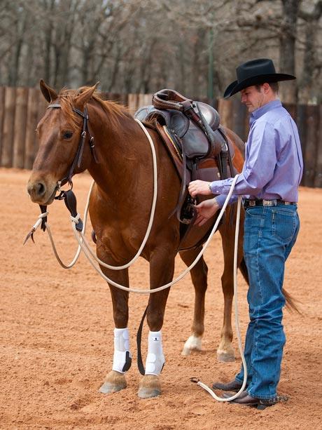 Performing the desensitizing exercise with the rope in between each of the groundwork exercises from Gaining Respect and Control on the Ground, before you saddle the horse, can make a big difference in how he reacts to both you and the saddle.