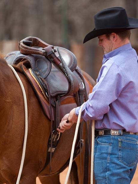 When I saddle a 2-year-old for the first time, I saddle him at 6 a.m. and keep him saddled all day. By letting the horse wear the saddle all day, I give him a chance to get over being scared, and usually by the end of the day he’s relaxed and has gotten past his initial reactivity.